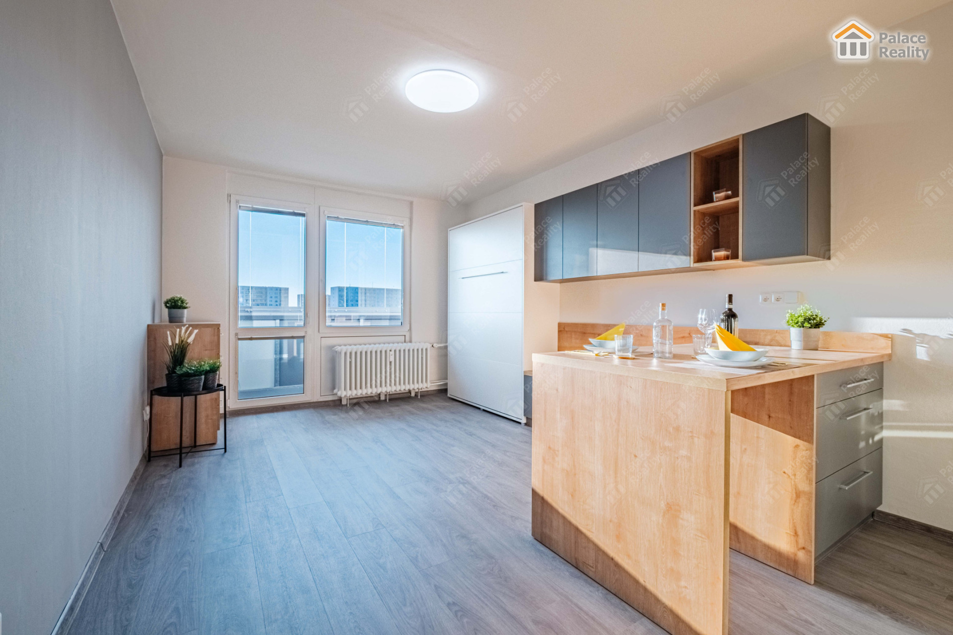 Nabízíme Vám k pronájmu velice hezký byt o dispozici 1+kk v 6. podlaží domu v atraktivní a vyhledávané lokalitě, ul. Brožíkova. V bytě byla právě dokončena citlivá a prakticky řešená rekonstrukce s důrazem na maximální využití prostoru, díky které byt působí velice příjemným a vzdušným dojmem.