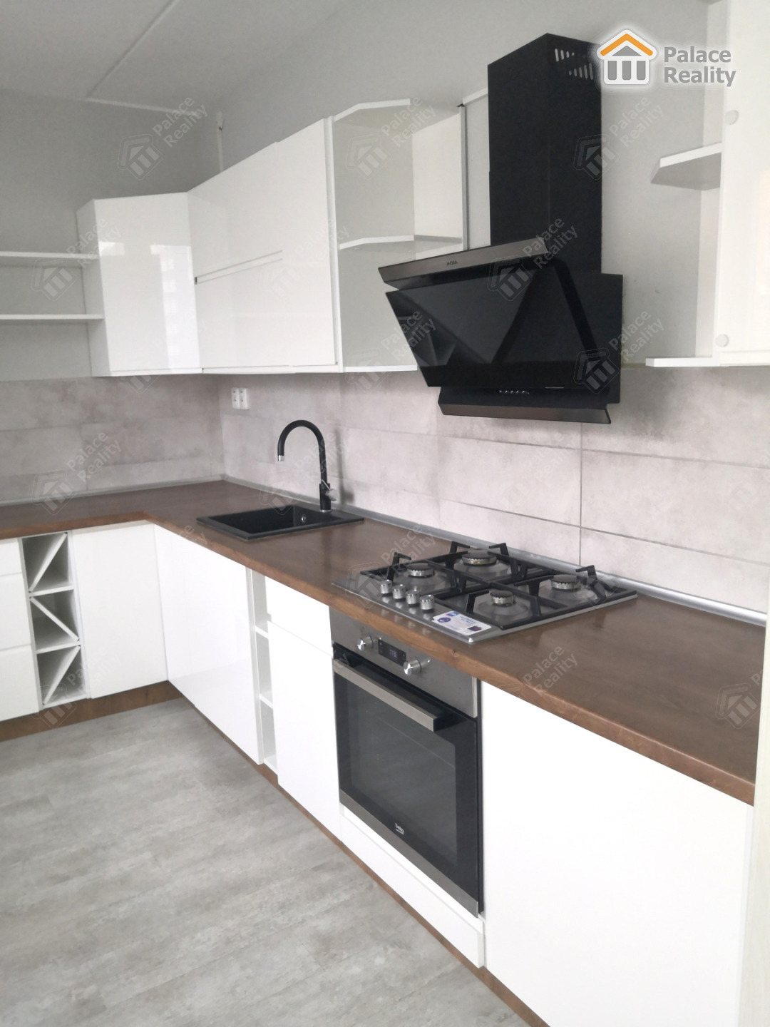 Byt tvoří předsíň s vestavěnou skříní, moderní kuchyň včetně vestavných spotřebičů (plynová varná deska, el. pečící trouba, odsavač par, lednice s mrazničkou), prostorný obývací pokoj, ložnice se vstupem na lodžii, dětský pokoj, koupelna s vanou a WC, technická místnost s přípojkou na pračku, lodžie. Sklep poskytuje další úložný prostor. Pro větší komfort byly v ložnici instalovány předokenní žaluzie. Byt je částečně vybavený, viz foto. Vytápění a ohřev vody ústřední dálkové.