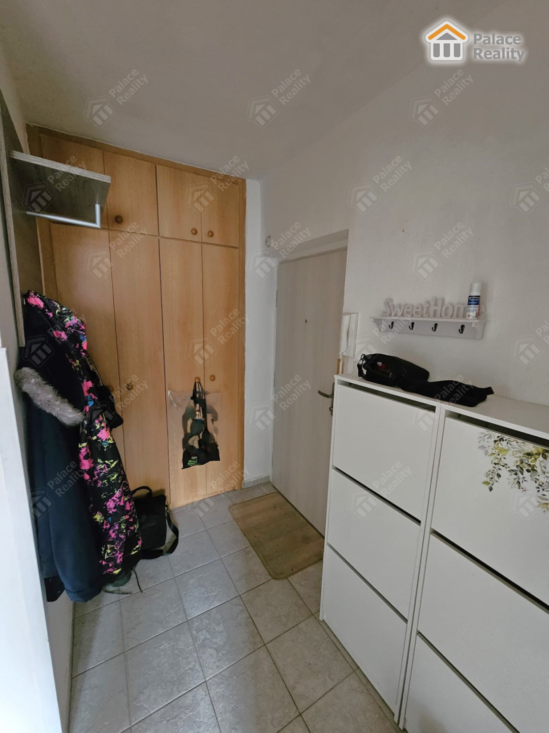 Dispozice: vstup, předsíň s odkládacím prostorem, prostorný obývací pokoj s jídelnou a vybaveným kuchyňským koutem včetně elektrospotřebičů, lodžie, 2 samostatné ložnice, koupelna se sprchovým koutem, WC, technická místnost. K bytu náleží sklepní kóje a komora mimo byt. Vytápění ústřední plynové, ohřev vody elektrickým bojlerem.