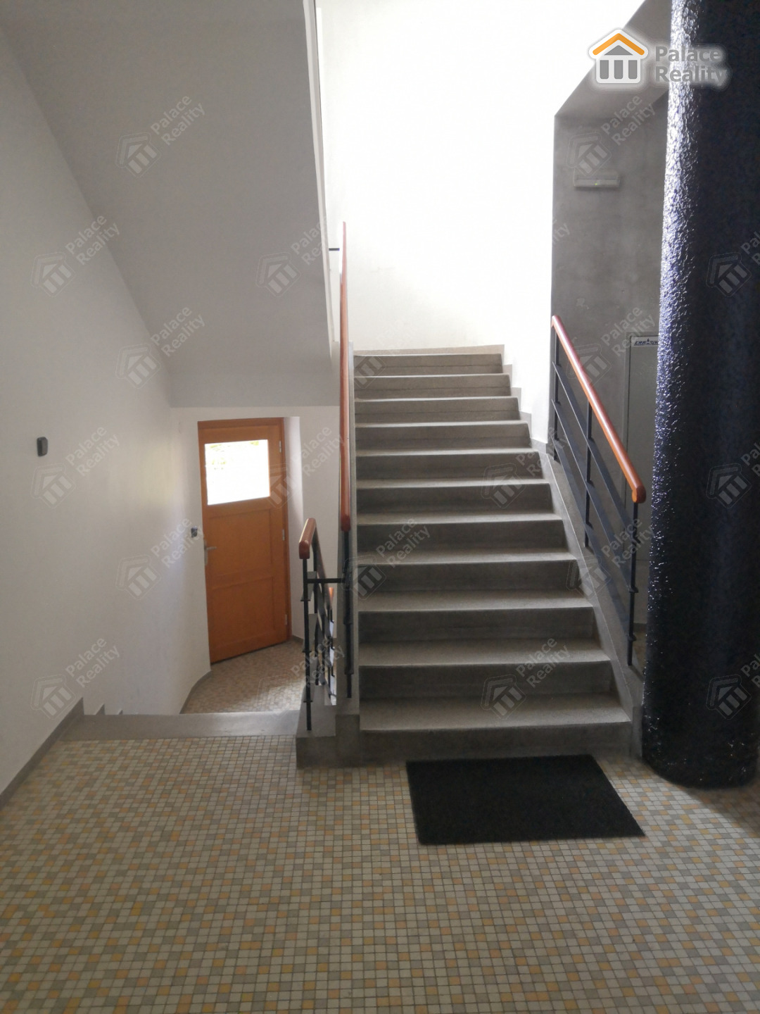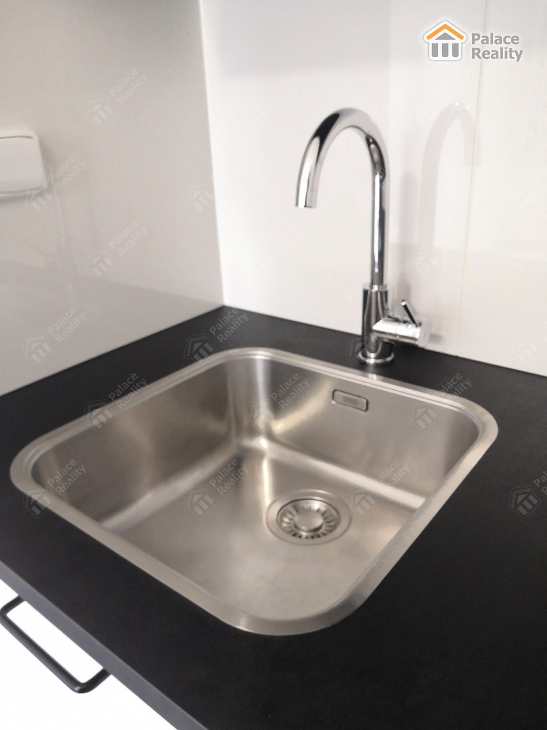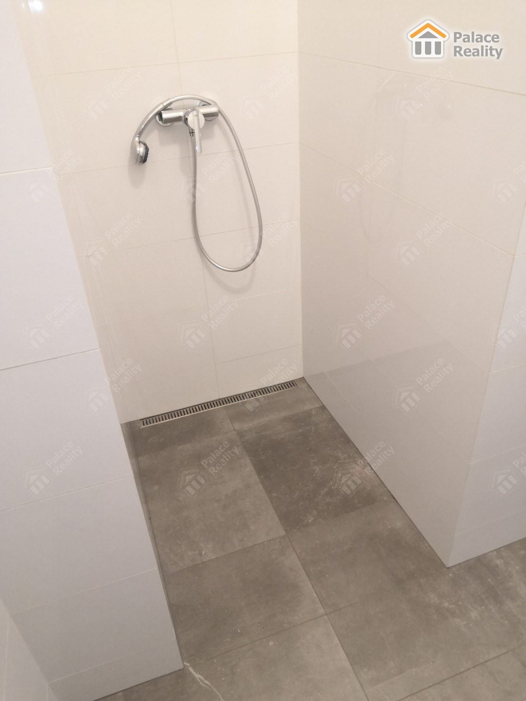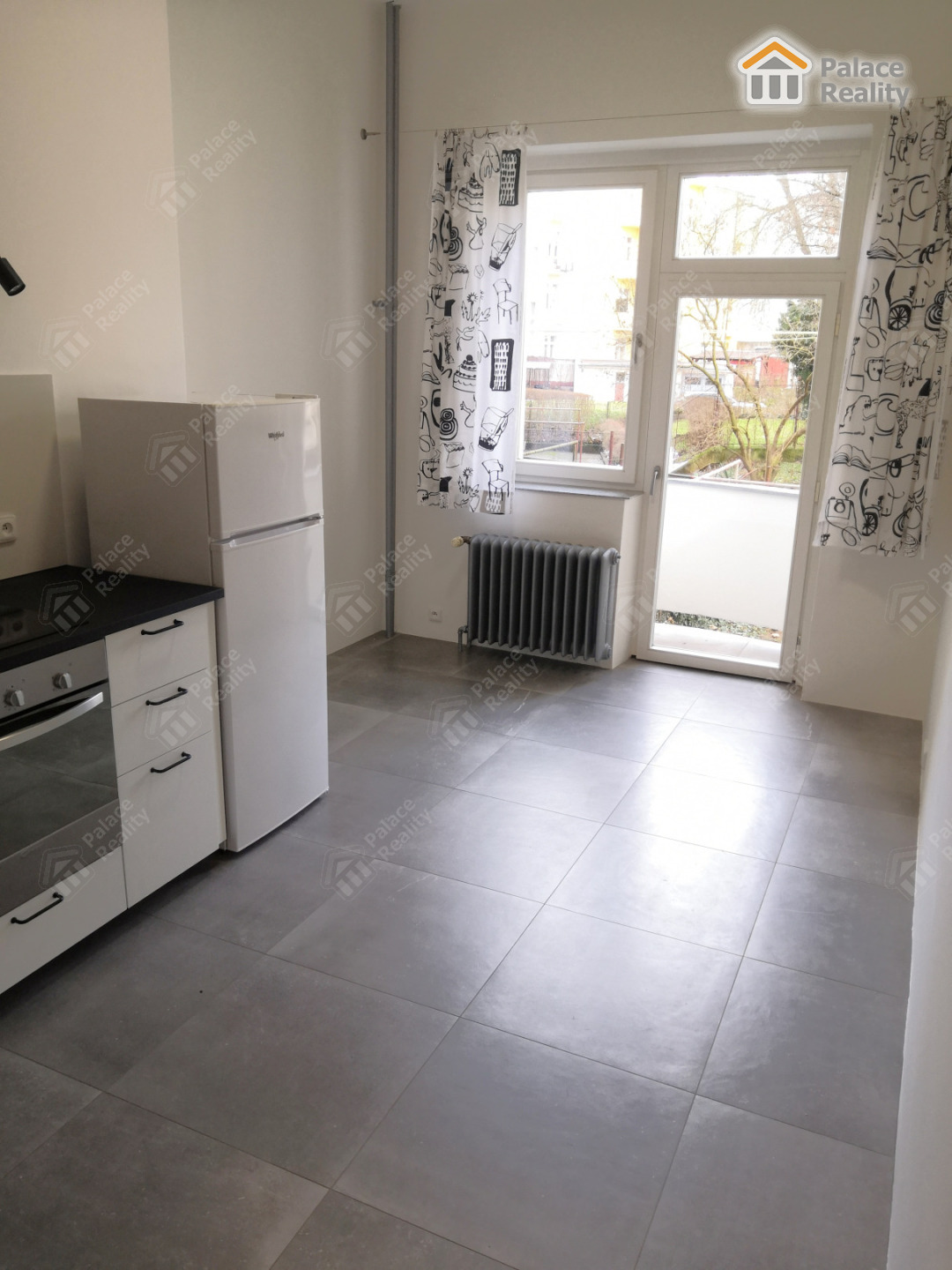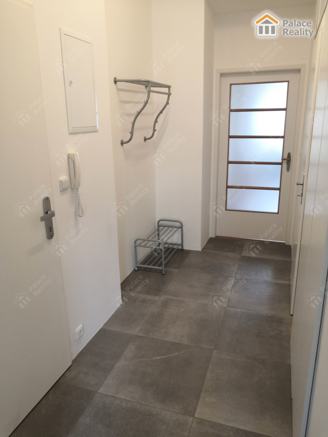 Dispozice: prostorná předsíň, plně vybavená kuchyně včetně spotřebičů (elektrická indukční varná deska, el. pečící trouba, odsavač par, myčka nádobí, lednice) se vstupem na balkon, obytná místnost, koupelna s walk-in sprchovým koutem a WC, technický prostor s automatickou pračkou a sušičkou prádla.