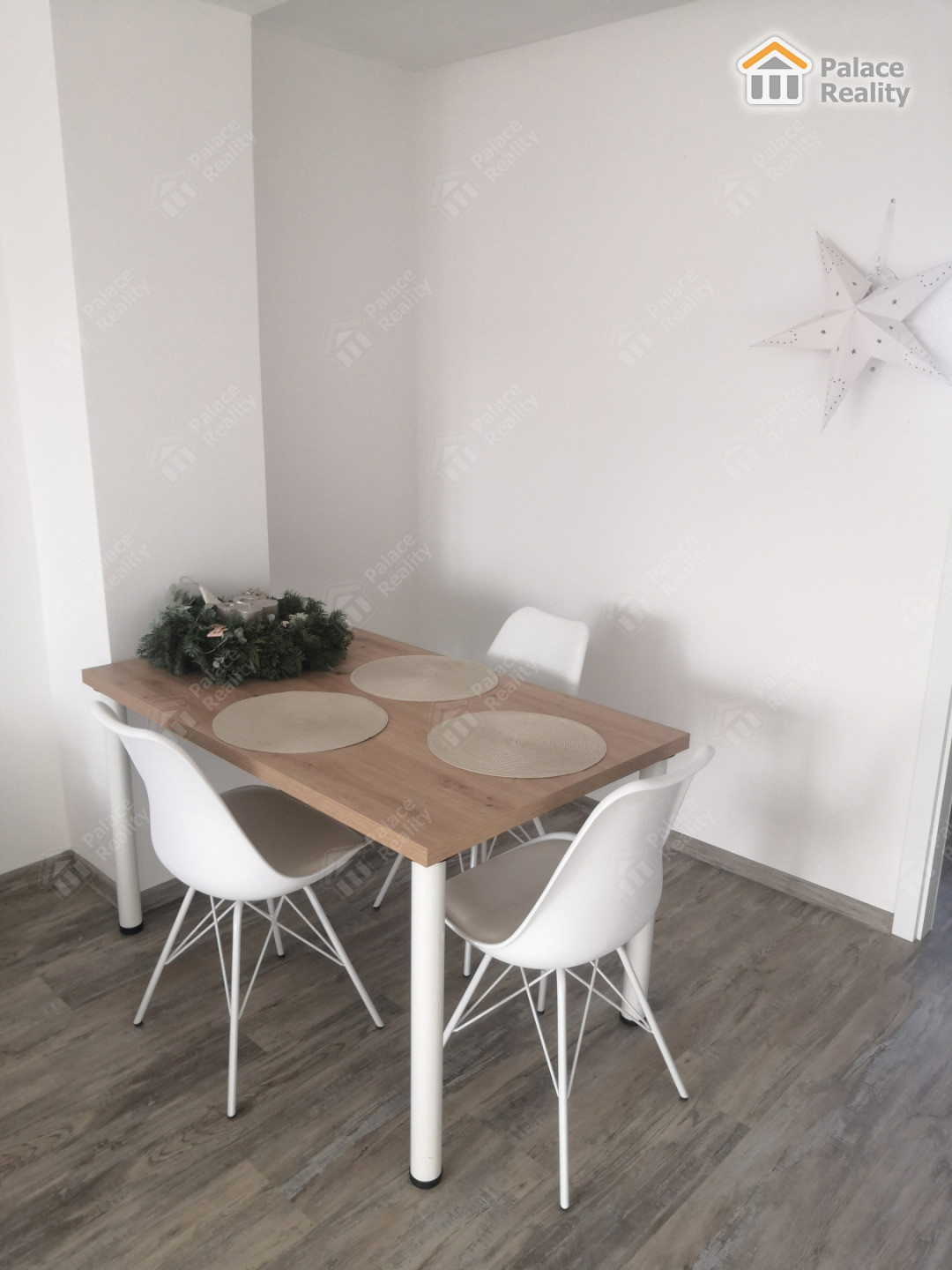 V bytě byla provedena kompletní, velmi citlivá a prakticky řešená rekonstrukce s částečnou úpravou dispozice. Dispozice zahrnuje předsíň, kuchyň, obývací pokoj, jídelnu, ložnici, koupelnu se sprchovým koutem a samostatné WC. K bytu náleží sklep. Vytápění a ohřev vody ústředním dálkovým systémem. Ve společných prostorách domu se nachází kolárna. Dům s výborně fungující správou je revitalizován a je osazen fotovoltaickou elektrárnou (FVE), která snižuje náklady na bydlení.