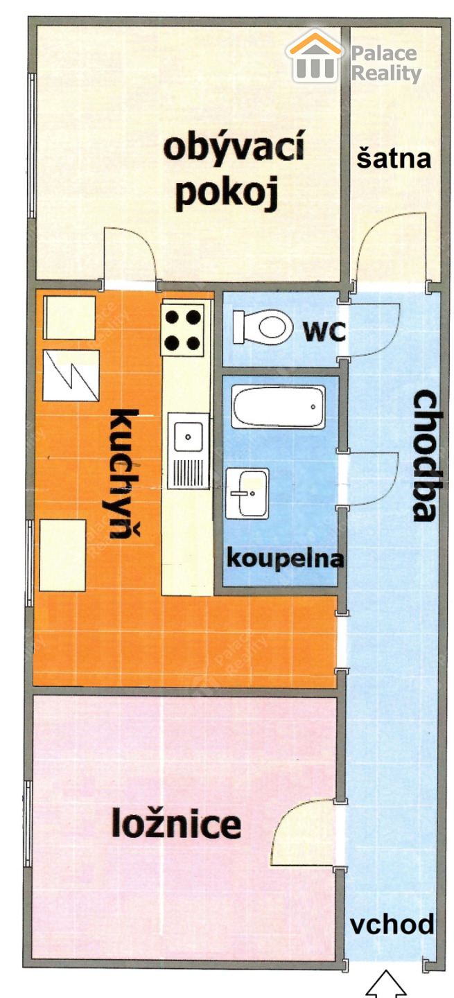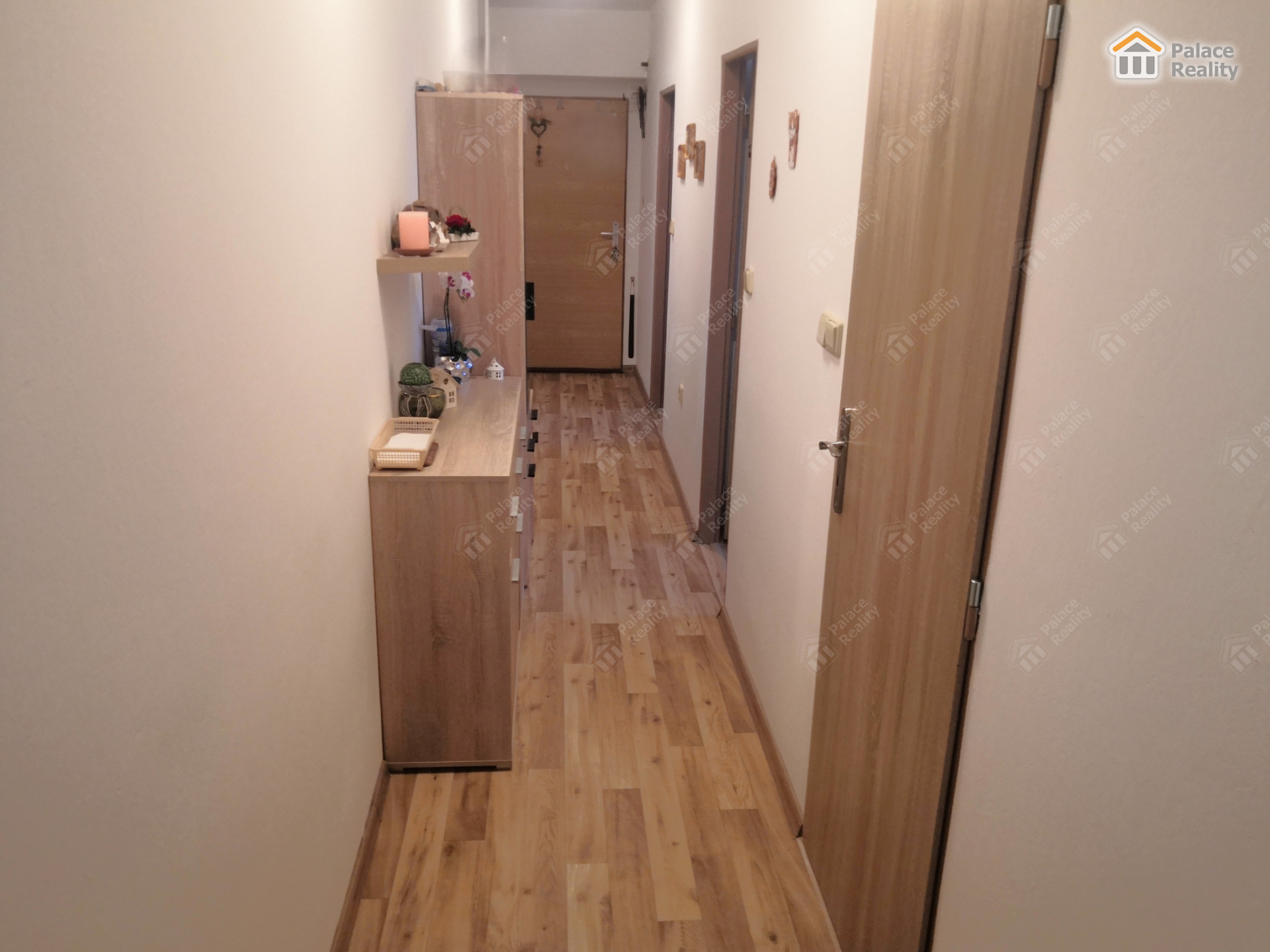 Dispozice: vstup, chodba, kuchyň, obývací pokoj, ložnice, koupelna se sprchovým koutem a přípojkou na pračku, samostatné WC a šatna. K užívání je dále společná kolárna a sušárna. Byt je vybaven novou kuchyňskou linkou včetně vestavných elektrospotřebičů – sklokeramická varná deska, elektrická pečící trouba a dále odsavačem par, myčkou nádobí a lednicí s mrazničkou. Podlahová krytina – kvalitní PVC, keramická dlažba. Vytápění ústřední plynové, ohřev vody elektrickým bojlerem (120 litrů). Byt je nabízen včetně veškerého vybavení a zařizovacích předmětů.