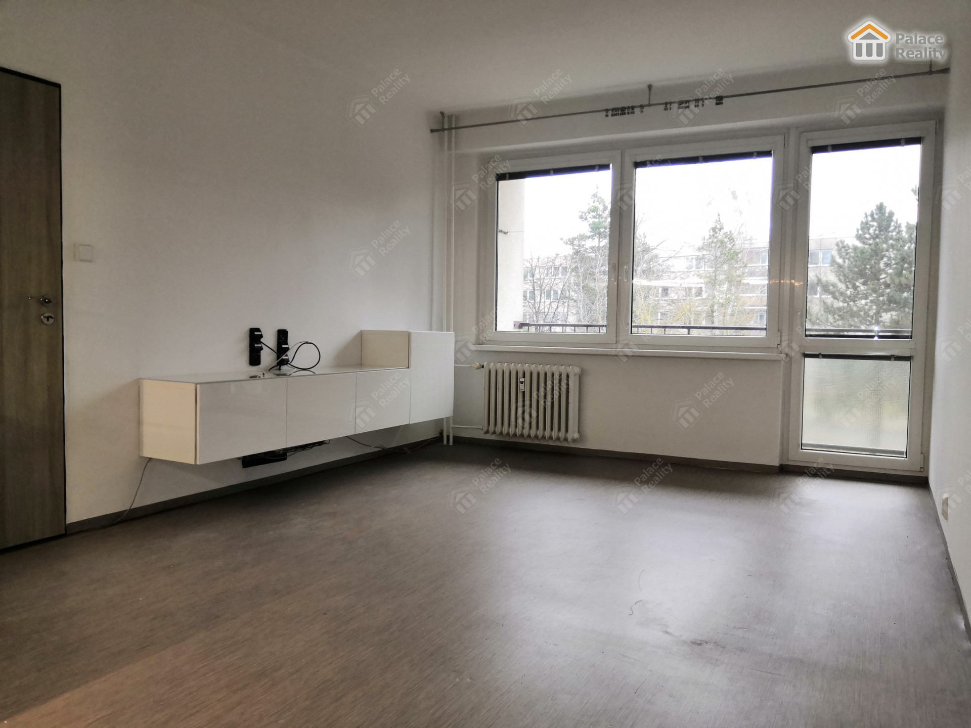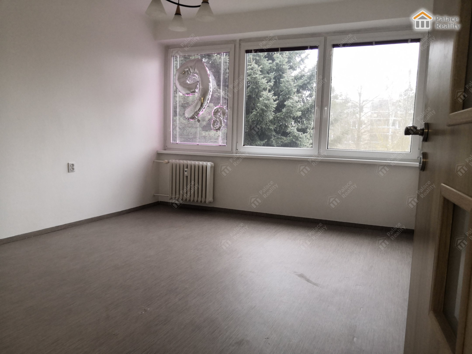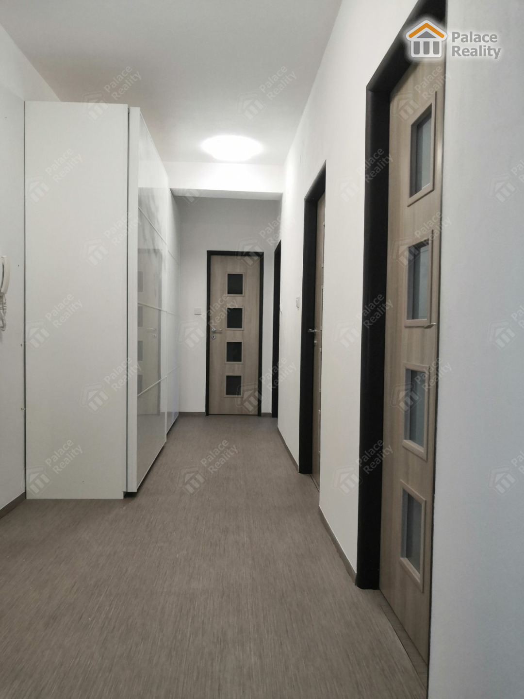 Byt tvoří prostorná předsíň s vestavěnou šatní skříní, obytná místnost (21,65 m2) s kuchyňským koutem a vstupem na lodžii, 2 samostatné ložnice (15,57 a 11,46 m2), pracovna (8,75 m2), koupelna s vanou i sprchovým koutem, samostatné WC.